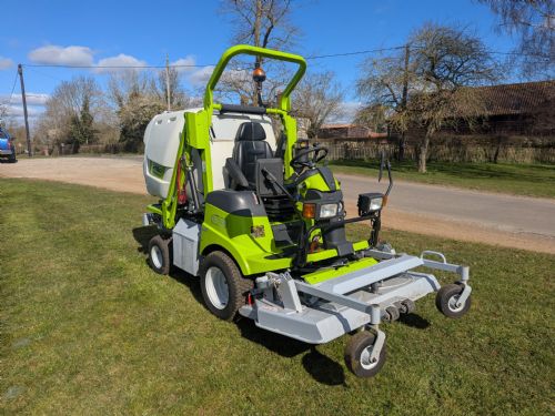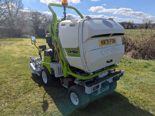 A Grillo FD13.09 out front mower, 2022 model year, only 711 hours, 3-cylinder Yonmer diesel, 4WD, hydrostatic drive, 132cm width cutting deck, 900 litre capacity collector, HighLift, road registered. In excellent order.