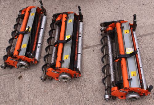 This machine has a 1600mm cutting width, with a cutting height range of 1.6mm to 11.1mm, and a 3.7mph mowing speed. This machine comes with three spare 11-knife TrueSet cutting rollers, with front three-section alloy rollers, rear roller brushes and grass boxes. The cutting units are in good condition.