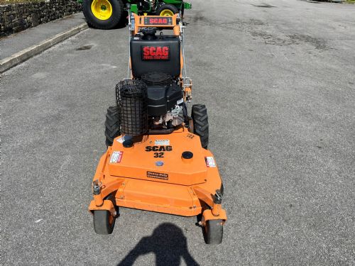 Scag SWZ, 32" rear discharge deck, 14HP petrol Kawasaki engine, chevron tyres, pull start.