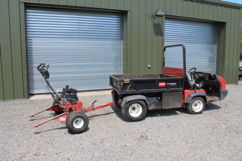 This easy to load trailer can be used to safely transport a pedestrian greens mower.