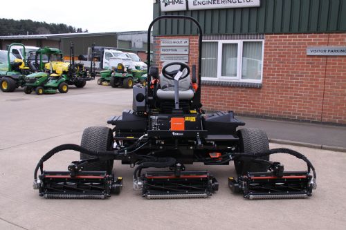 It is a 4WD machine powered by a 4-cylinder diesel engine delivering 44.9HP. C/w a ROPS. This machine has five 664mm cylinder cutting reels, which allow the machine to operate over contours and climb inclines with ease, and comes with rear roller brushes.