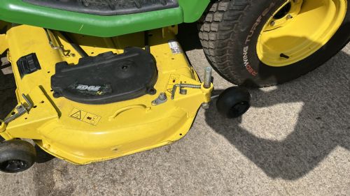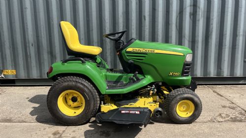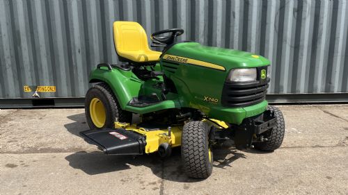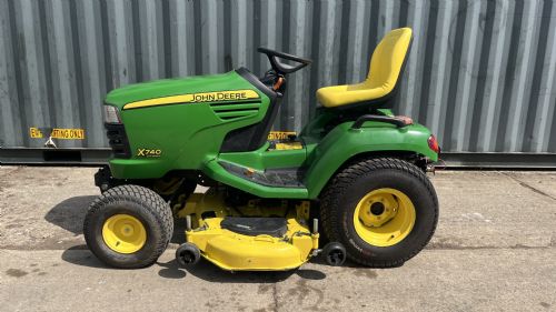 John Deere X740 Garden Tractor with 54" Side-discharge Cutting Deck. This machine benefits from a full service in our own workshops fitting genuine John Deere service parts. Powered by the renowned 3 cylinder Yanmar Diesel Engine this machine includes selectable on demand 4WD, and power steering and deck lift. This tractor is suitable for cutting large areas of grass; orchards, paddocks and so on. We welcome viewing during office hours but please call 01242 238342 (option 1) beforehand. Free delivery throughout Gloucestershire. Delivery to other areas possible; please enquire for an estimate of cost. Supplied with a full warranty.