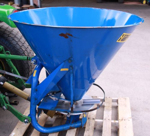 This machine is a compact tractor-mounted fertilizer spreader with a 450 litre (500kg) load capacity. It has a spreading width of around 6m - 10m, it is 1130mm high and 1180mm wide, and weighs approximately 60kg. It is ideally suited for 14 - 40 HP tractors.