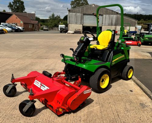 A 2018 John Deere 1570 TerrainCut Rotary Mower with 1003 hours on the clock and in very good condition. This machine has 4-WD, a 3-cylinder diesel engine, with hydrostatic transmission and produces 30HP. This machine is complete with a Trimax Flaildek FX155 Out Front Flail very popular with contractors due it’s fantastic productivity and finish. The strong forged steel flails reduce hp requirements, yet generate sufficient updraught for a clean cut This rotary mower is road registered, has a beacon and a ROPS.