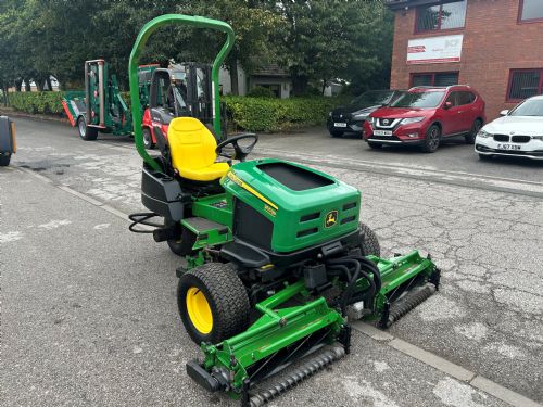 John Deere 2653B surrounds mower, 26" 5 blade QA7 cutting units c/w rear roller power brushes, spiral rear rollers and smooth rear rollers. 19HP diesel Yanmar engine.