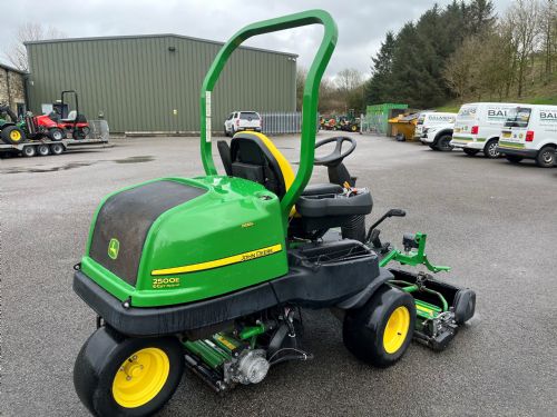 John Deere 2500E Greens mower, 19HP diesel Yanmar engine, 2WD, 22" QA5 11 blade units c/w rear roller power brushes.