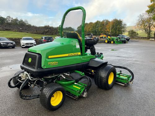 John Deere 7700A fairway mower, 41HP diesel Yanmar engine, 26" QA7 units c/w rear roller power brushes, air seat, 4WD.