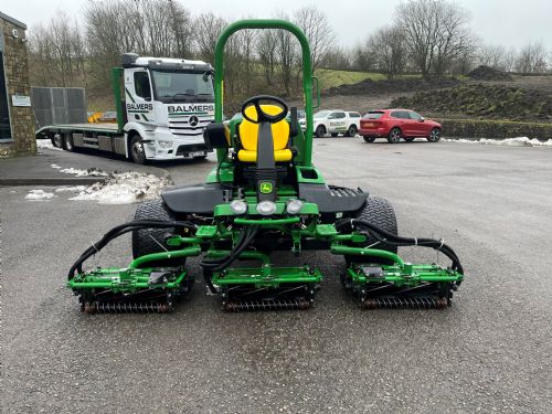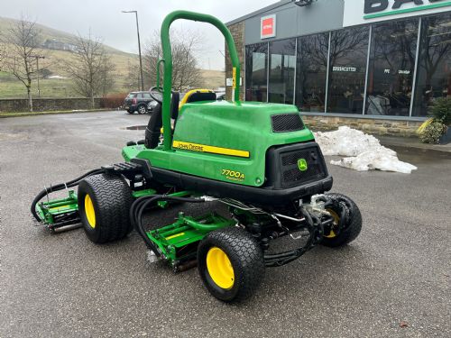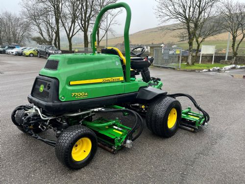 John Deere 7700A fairway mower, 41.6HP diesel Yanmar engine, 22" 8 blade QA7 cutting units c/w rear roller power brushes, 4WD. tech control display unit.