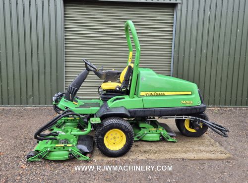 John Deere 7400a surrounds pod mower, Year 2018 (Sold new in 2019) - 2096 hrs, 37 hp Yanmar diesel engine, 68" extending to 74" width of cut, all wheel drive traction system, tech control, HST, PAS, ROPS. £17,750 + VAT * Awaitin Prep * All serviced, Greased and work-ready, Includes free UK mainland delivery, 3-month warranty (see RJW website), full on-site installation if required, and operator’s manual supplied.