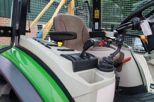 The JD 4720 has a 2.4 L four-cylinder diesel engine and hydrostatic transmission with infinite (3-range) forward and reverse gears which means it's easy to control and can go forward and backward smoothly. The engine is turbocharged, giving it extra power when needed, also comes with cruise control.