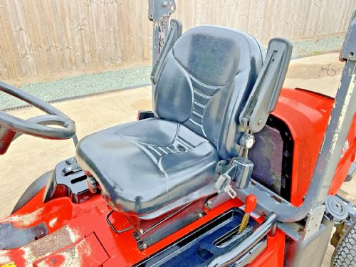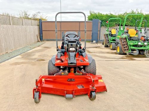 Fitted with a 60 inch, triple blade rear discharge cutting deck