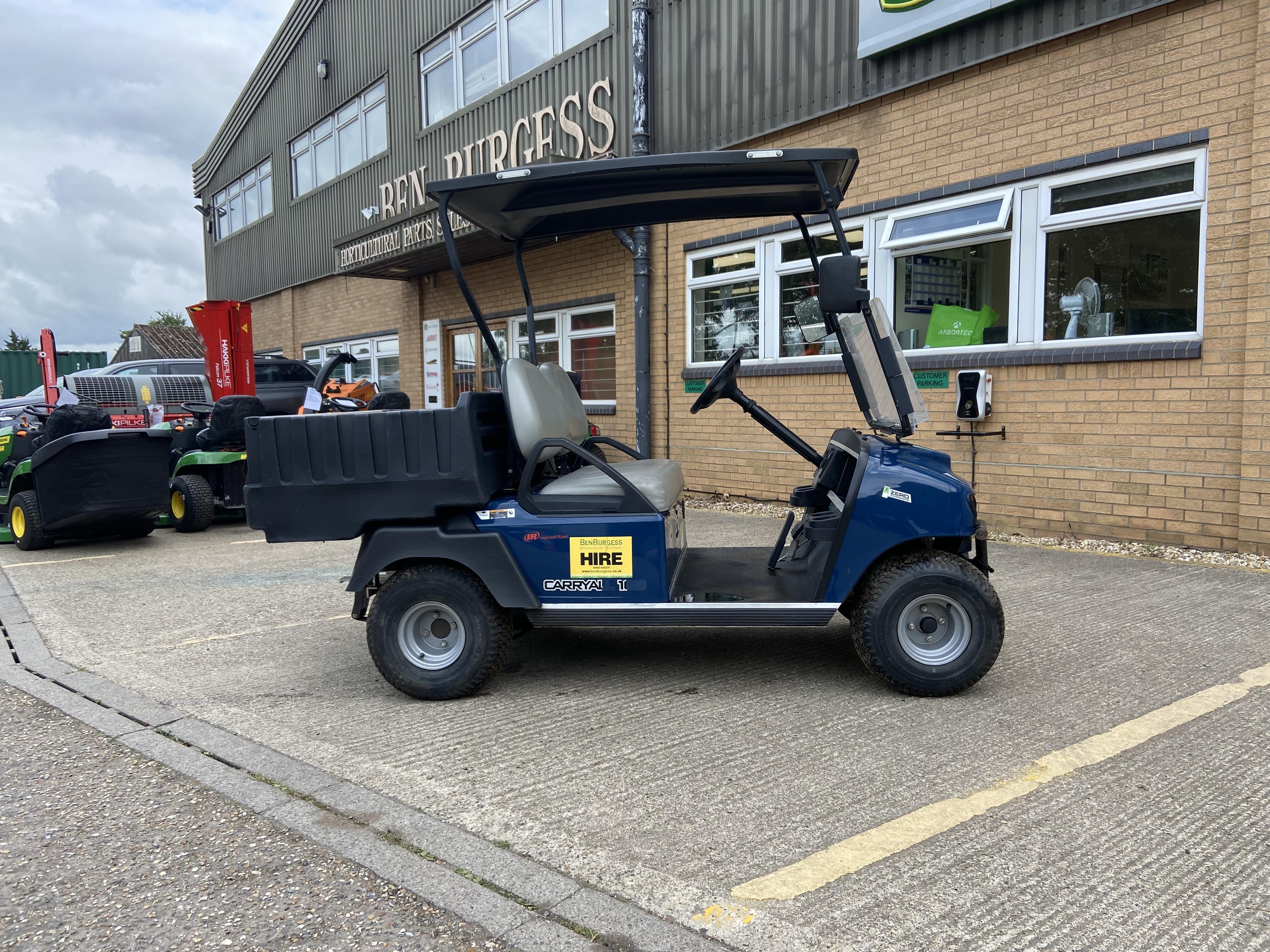 48v SYSTEM (6x8v) VARIABLE FORWARD/REVERSE SPEED SEAT CAPACITY:2 BODY COLOUR: BLUE, SEAT COLOUR: GREY, CANOPY COLOUR: BLACK, WINDSIELD, OFF-BOARD CHARGER, FRONT BUMPER, CARGO BOX, HEADLIGHT