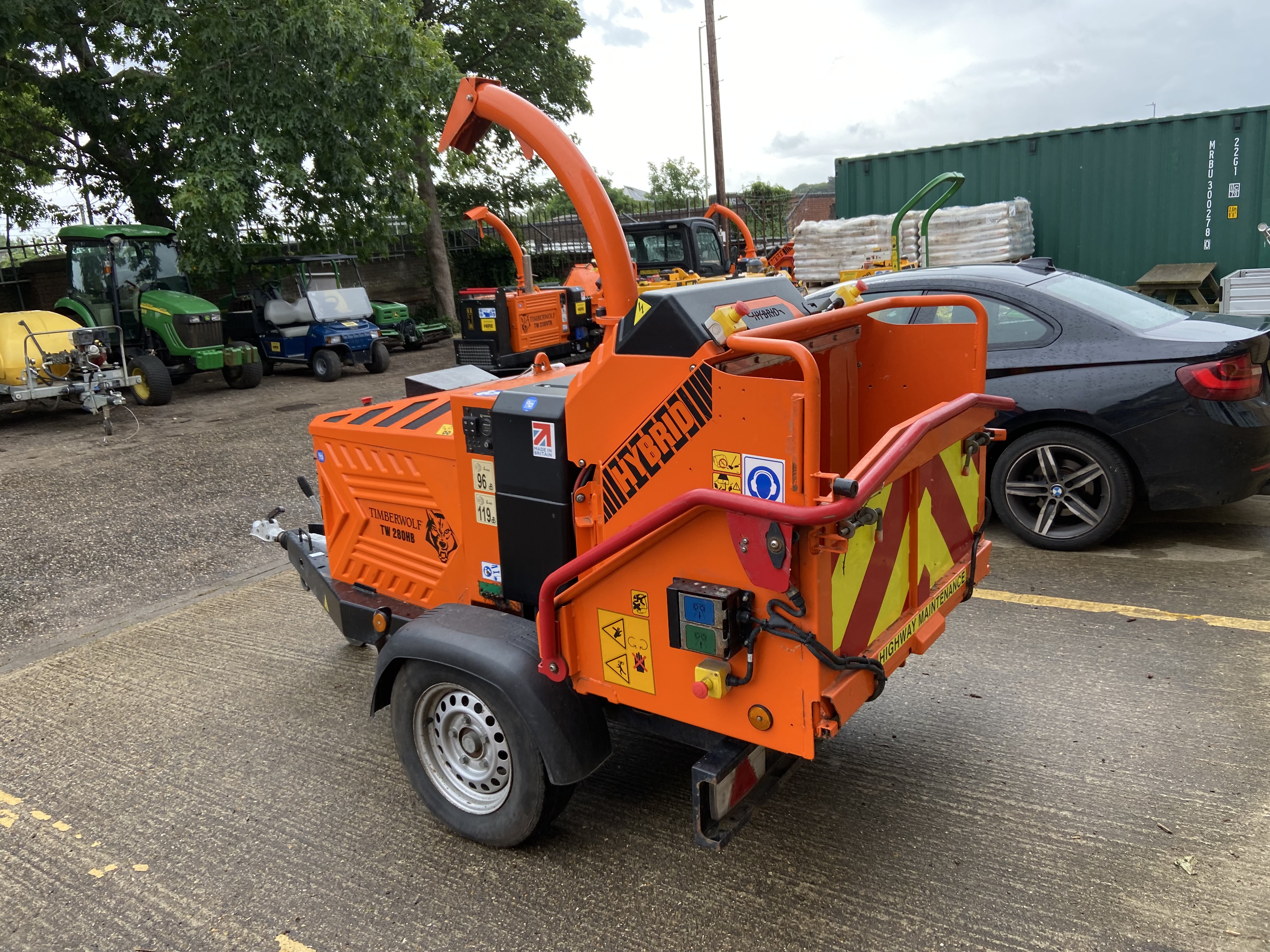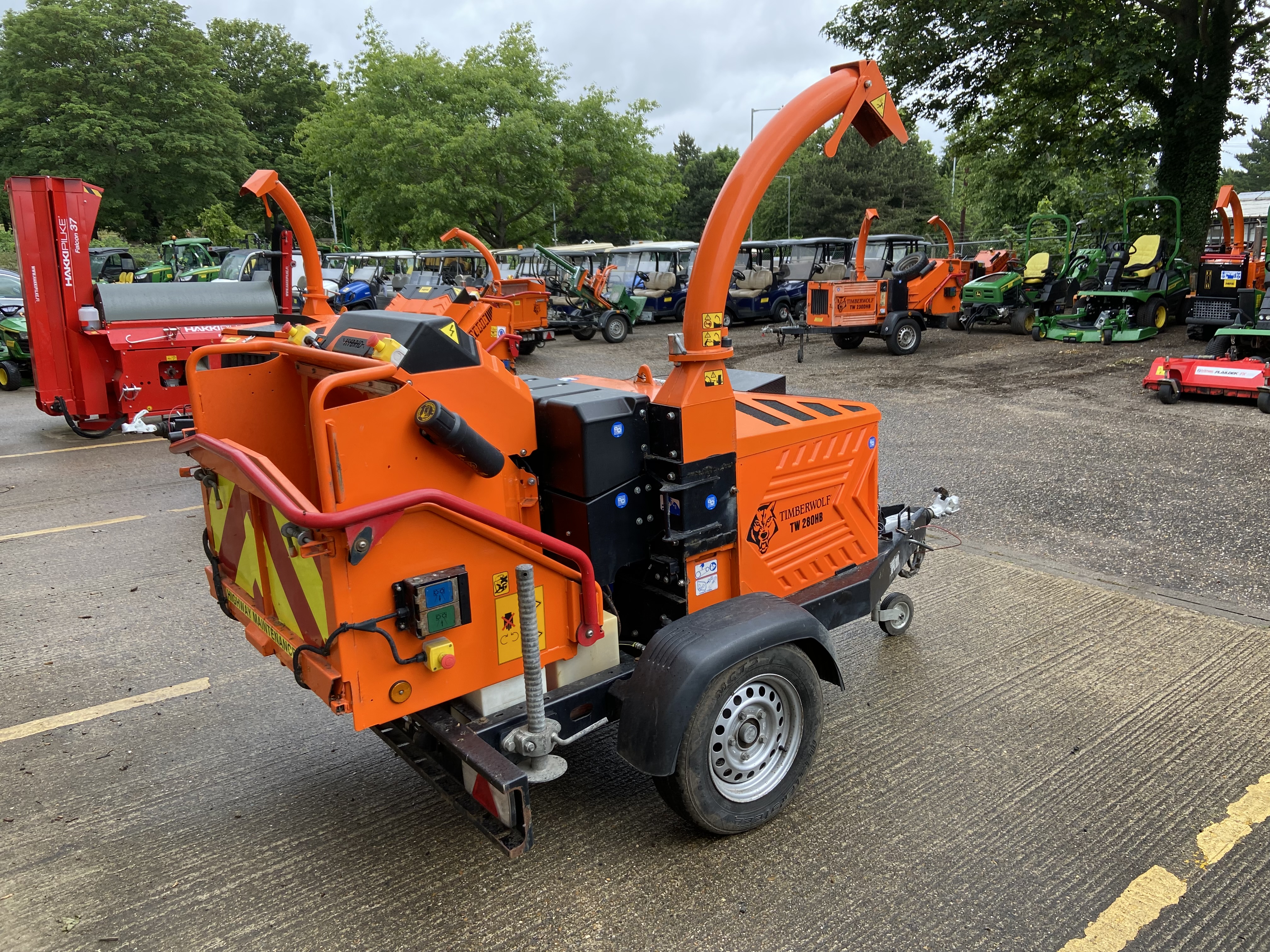 EX-HIRE TIMBERWOLF TW 280 HBH 62HP HYBRID ROAD TOWED CHIPPER, 8"DIAMETER HYBRID SUPER CAPACITOR BATTERY, 24.3 HP KUBOTA DIESEL ENGINE, 37.3 HP GSM TWIN HYDRAULIC ROLLERS, C/W AUTO FEEDCONTROL.
