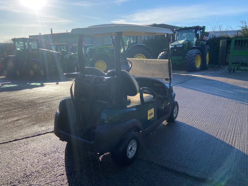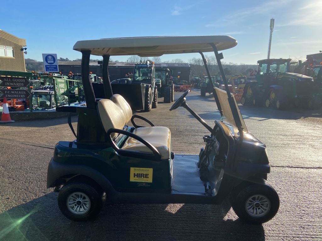 DARK GREEN BODY WITH BEIGE SEATS AND CANOPY, TINTED HINGED WINDSHIELD, PREMIUM SILVER WHEELS WITH 4-PLY TIRES, LITHIUM ION POWER, ON-BOARD CHARGER, ECONOMY ACCELERATION PROFILE, STANDARD STEERING, AND A TOP SPEED OF 14.8 MPH. WARRANTY UNTIL APRIL 2026.