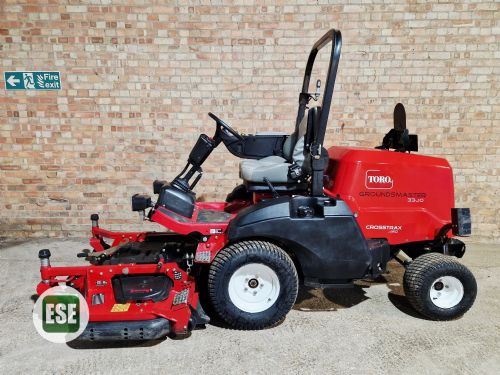 Toro Groundsmaster 3300 Mower fitted with a powerful 37p Yanmar stage V diesel engine. The transmission is hydrostatic with single pedal operation both forward and reverse. A tight turning circle and lightweight power steering gives superb maneuverability with excellent traction at all times through its clever CrossTrax 4wd system. The mower is fitted with a heavy duty 1.5m (60″) dedicated rear discharge cutting deck with is direct shaft driven from the engine. Very easy to use and operate for extended periods thanks to its deluxe comfort seat and simple ergonomic controls. (just 3 buttons )