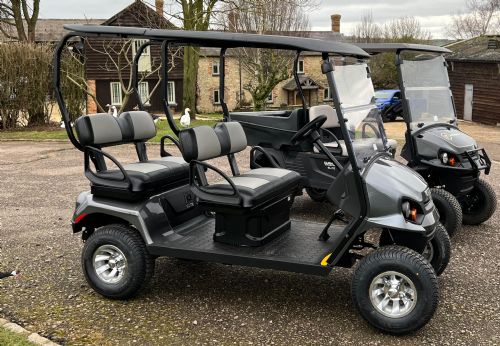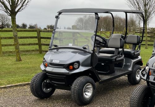 A special E-Z-GO® Liberty model - Ex-Display - with metallic graphite grey colouring, canopy screen and roof, custom alloy wheels and twin lithium batteries to take you further!