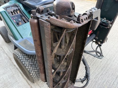 HOURS 1900 SHOWING . . GOOD BOTTOM BLADES. 6 KNIFE. 8″ CYLINDER. 2WD. WAS A TRADE IN CHEAP MOWER IS CUTTING GRASS AND DRIVING GOOD ENGINE