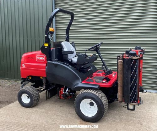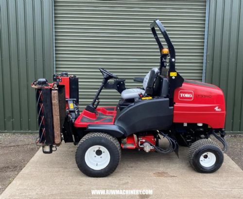 Toro LT3340 Triple cylinder mower, year 2015 - 1363 hrs, 35hp, 4 cylinder Kubota diesel engine, Hydrostatic transmission, PAS, ROPS, 4 wheel drive on demand, 2.12m working width, indepenent head lift, 8" 8 bladed MKIII cutting units, road registered, will come Fully serviced & blades sharpened. ideal for cricket or sports grounds. £8,750 + VAT