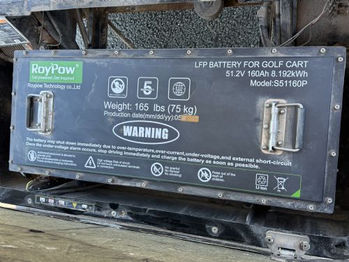 Fitted with a HI POWER 51.2V 160Ah RoyPow lithium battery (8.192kWh), giving a major upgrade over standard lead acid setup. Ideal for golf club, hotel, holiday park, site transport, events, grounds use or private estate use.