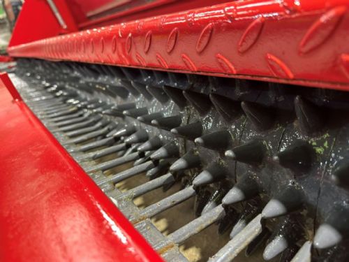 BLEC Multiseeder BMS2400 used and refurbished - shotblasted and re-painted - front and rear multi spike cast ring roller - large seed hopper with agitator rotor - hydraulic seed shut off - drag brush with height control