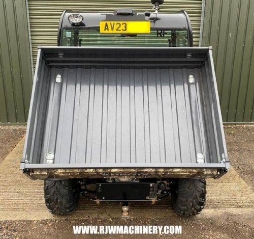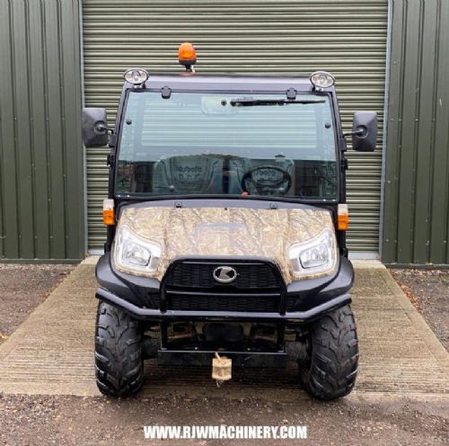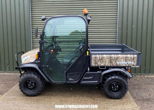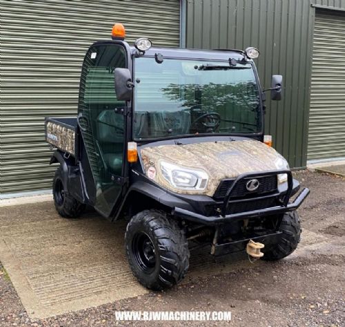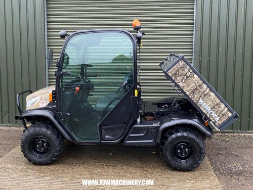 Kubota RTV X1110, year 2023 ~ 2130hrs, 24hp 3 cylinder Kubota diesel engine, VHT-X variable hydrostatic transmission and dynamic engine braking, Hi/Low range, PAS, selectable 2/4 wheel drive, full cab c/w heater, hydraulic tipping cargo body, front and rear spot lights, road registered. £15,500 + VAT