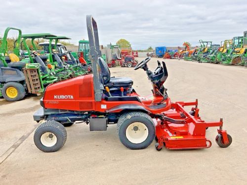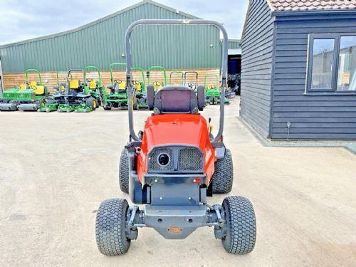 Fitted with a 60 inch, triple blade rear discharge cutting deck