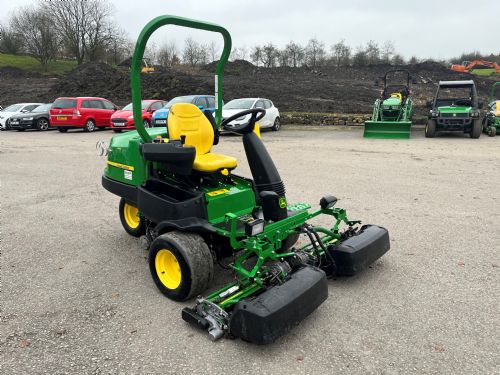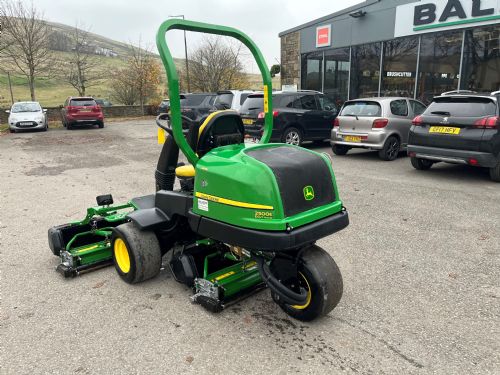 John Deere 2500E greens mower c/w 22" QA5 11 blade cylinders, rear roller power brushes and GTC, 19HP diesel Yanmar engine, smooth tyres, 3WD.