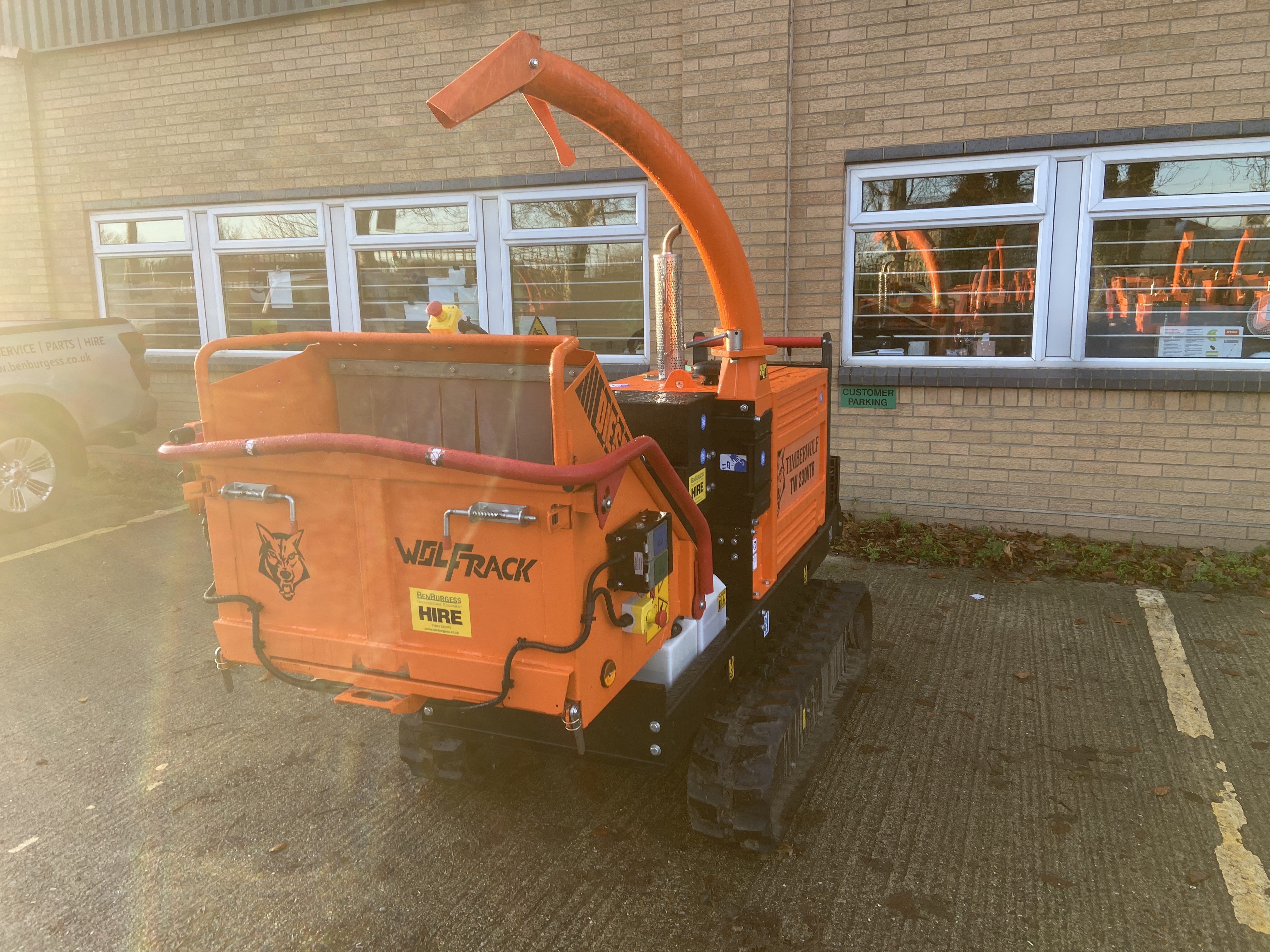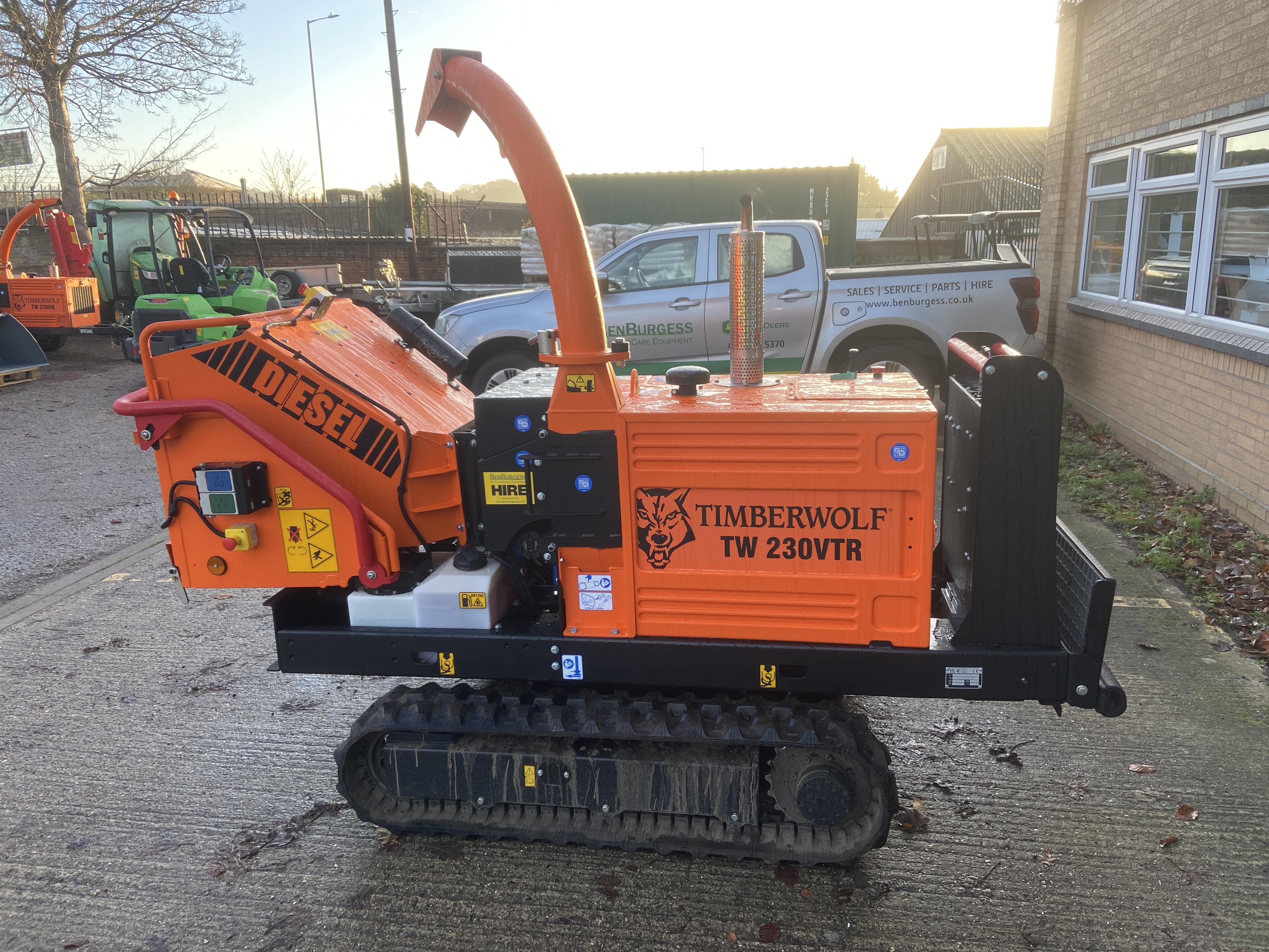 EX HIRE TIMBERWOLF TW 230/VTR 25HP DIESEL ENGINE, 6" CAPACITY QUAD FORCE ROLLERS WITH AUTO FEED CONTROL 2 SPEED TRACKING 2.5KPH & 5KPH 36L TANK CAPACITY, 1280KG WEIGHT 2 QUICK ACCESS REVERSABLE BLADES 5T PER HOUR OUTPUT DETACHABLE FEED FUNNEL WARRANTY ENDS 28/08/2028