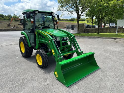 NEW John Deere 3046R compact tractor c/w JD 320R loader and bucket, 44.7HP diesel Yanmar engine, e-hydro transmission, rear lift capacity of 999KG, mid and rear SCV, towing capacity of 2450KG, loadmatch, cruise control, air con, radio, road legal and road registered.