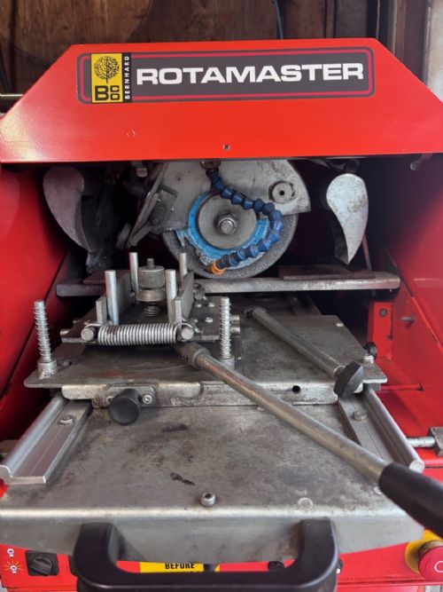 Description from Bernhard: "Rotary Blade Grinder The Rotamaster 4000 ensures both ends of the rotary blade are sharpened with automated precision. It delivers a superior edge with consistent balance for a better quality cut. The result is longer lasting blades and better looking grass. With a clamp mechanism and fast-aligning jig bars, blade mounting is quick and easy, improving overall cycle time.