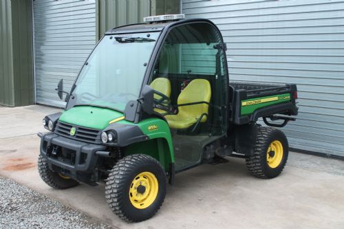 John Deere XUV 855 Gator for sale. 854cc 3 cylinder Diesel, Full Cab, Road Lighting Kit model fitted with a power lift kit and Rear bumper guard.