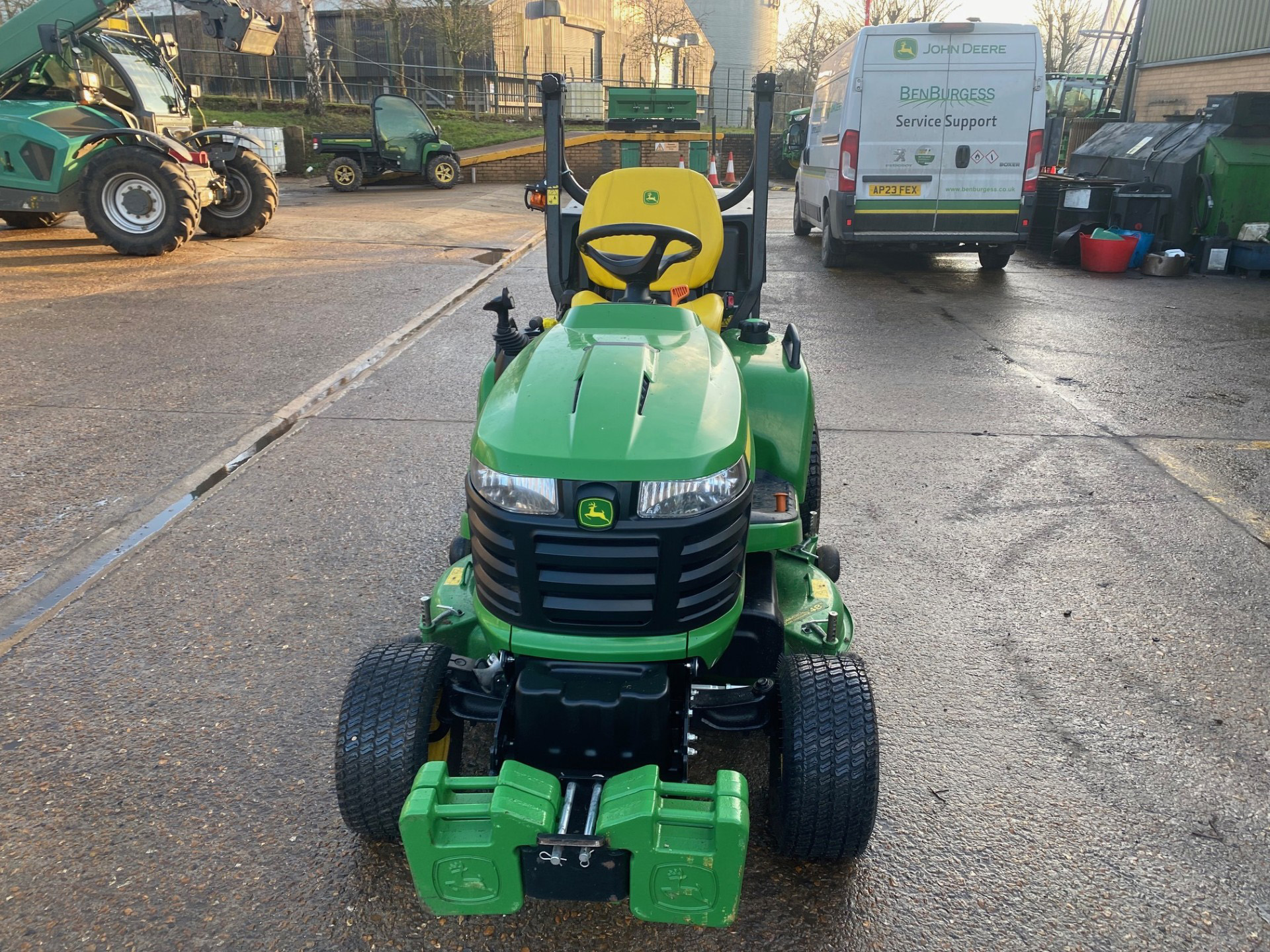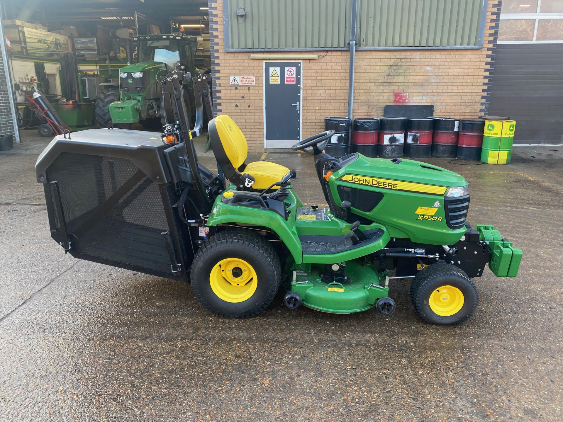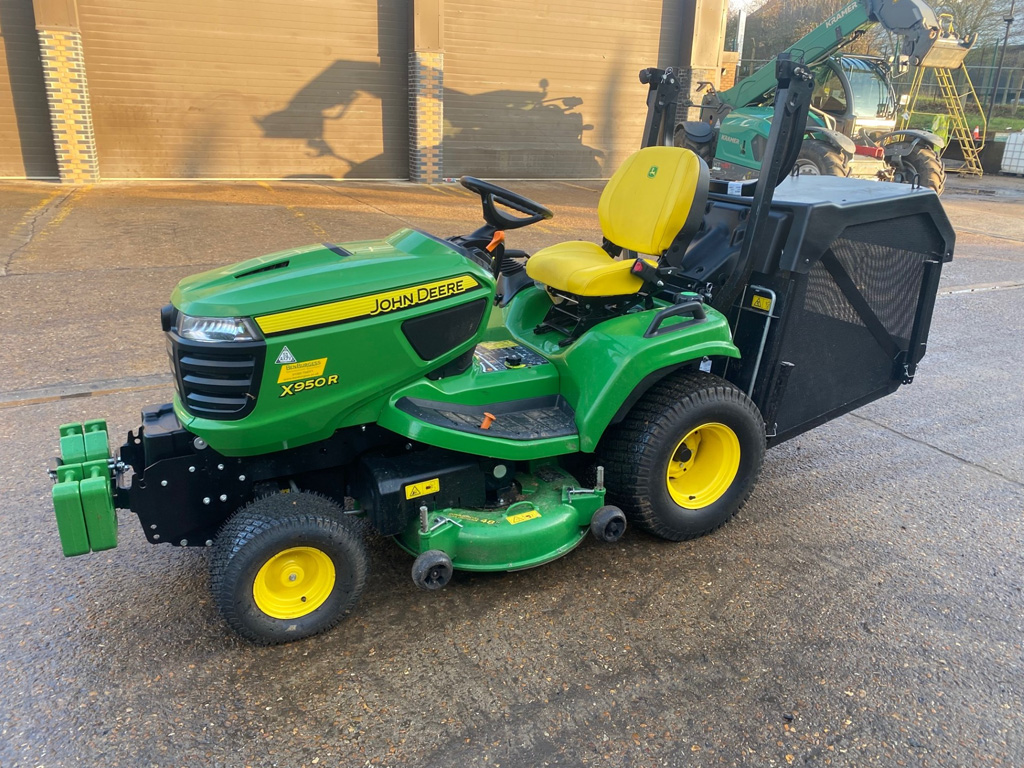 JOHN DEERE X950R DIESEL COMMERCIAL RIDE-ON MOWER. 2020 MODEL WITH ONLY 100 HOURS. 24HP ENGINE, 48-INCH DECK, AND STANDARD LOW-TIP COLLECTOR. INCLUDES 4 FRONT WEIGHTS FOR SUPERIOR STABILITY. LOW-HOUR, NEAR-NEW CONDITION READY FOR IMMEDIATE COMMERCIAL WORK. DELIVERY AVAILABLE.