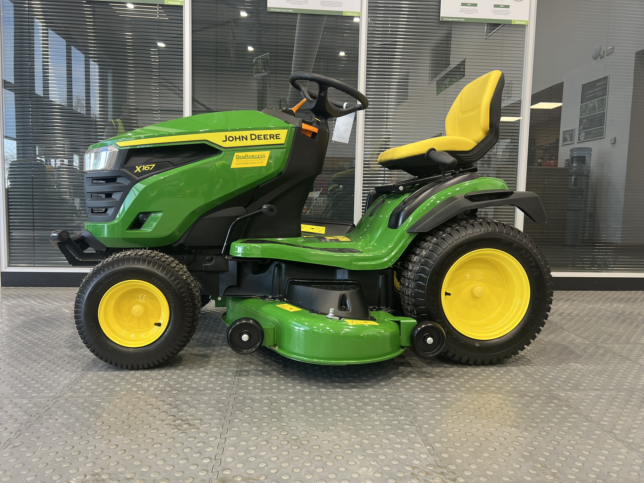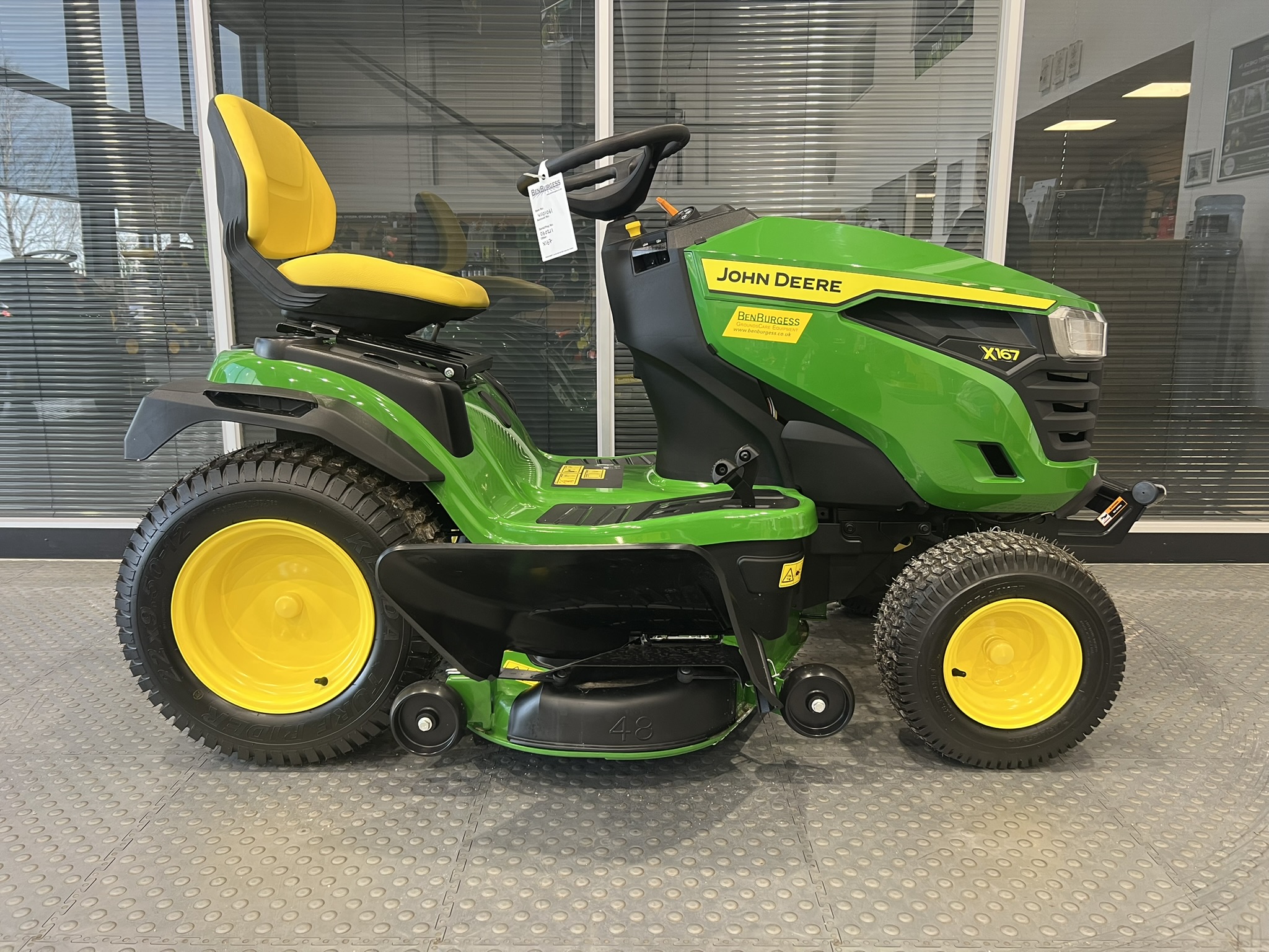 NEW 2025 JOHN DEERE X167. EQUIPPED WITH A POWERFUL 724CC V-TWIN ENGINE AND 48" EDGET MOWER DECK. INCLUDES MULCH COVER AS STANDARD FOR A NUTRIENT-RICH FINISH. FEATURES CRUISE CONTROL, SIDE-BY-SIDE PEDALS, AND AN ADJUSTABLE HIGH-BACK SEAT. ZERO HOURS WITH UP TO 3 YEARS WARRANTY. READY TO MOW.