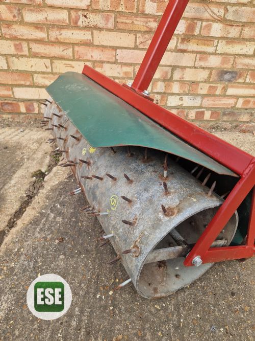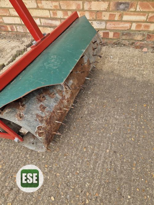 Aids water/air penetration, greatly improves root growth, for use when seeding and general turf maintenance. Each large spike section is 11″ diameter, calculated to avoid ‘tearing’ of the turf. The tensile steel spikes are 1/4″ in diameter, and 1 1/3″ in length. Each spike is replaceable, held on with a nylock nut. Also coupled to each unit is a 4 1/2″ diameter roller for transportation across hard surfaces and for use as a ground rolling tool.