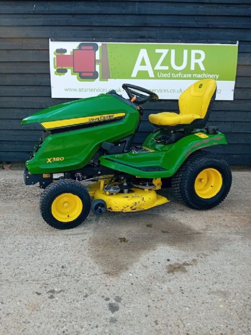 2 x Used John Deere X380 ride on lawn tractors fitted with the following:
