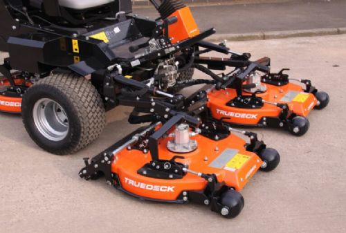 The machine has three 686mm TrueDeck rotary cutting decks, which allow the machine to operate over contours and climb inclines with ease. With an overall length of 3100mm, a height of 2060mm and a transport width of 1960mm and can cut 4.5 acres per hour at 6mph.