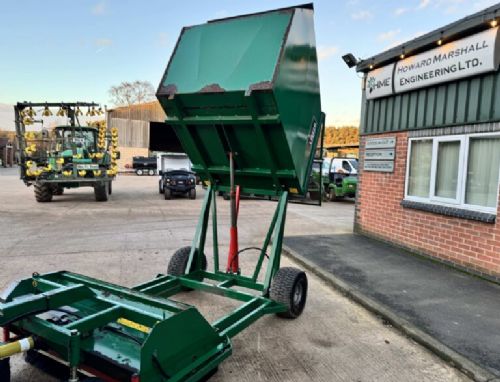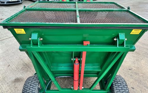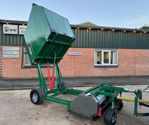 A powerful hydraulic ram tips debris from the collection hopper at a height of 1.5m into a low trailer or heap on the ground.