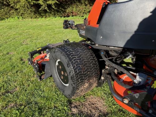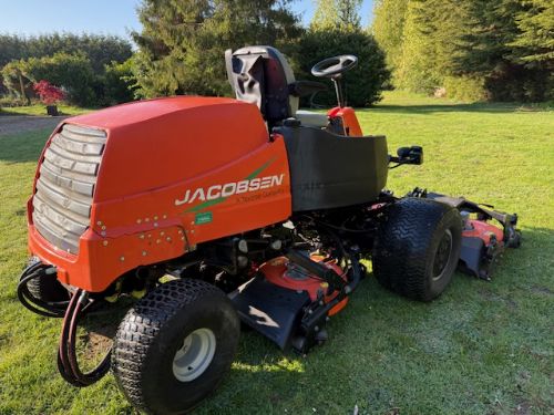 JACOBSEN AR522 5 POD MOWER HOUR 3000 Powered by a 4 cylinder 48hp Kubota diesel engine Fitted with individual floating cutting decks to follow the contours of the ground with ease Fitted with rear discharge cutting decks – these currently have mulching covers fitted Decks are fitted with rear rollers to leave a striped effect 2.3 metre cutting width Hydrostatic 4 wheel drive transmission Hydraulic deck raise / lower Tyres are in good condition all round BONNET HAS DAMAGE